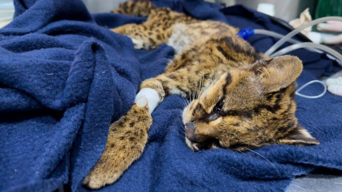 Una hembra adulta de tigrillo lanudo fue encontrada en condiciones críticas junto a un sendero del Cerro de las Tres…